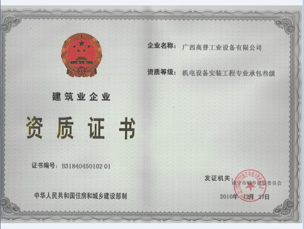 本公司是高新技術(shù)企業(yè),持有國家技術(shù)監(jiān)督局頒發(fā)的1級《特種設(shè)備安裝、改造、維修(鍋爐)》許可證,1級許可證是最高級別,可安裝、改造、維修任何形式、參數(shù)的鍋爐設(shè)備。并持有《壓力管道》安裝、改造維修許可證,1級《壓力容器》安裝、改造、維修,機(jī)電設(shè)備安裝工程專業(yè)承包3級等資質(zhì)。